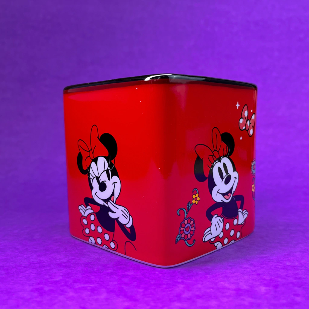 Transforme seus momentos de pausa para o café em algo especial com a Caneca Quadrada Minnie Mouse. Um toque encantador para celebrar a alegria da personagem mais querida da Disney.
