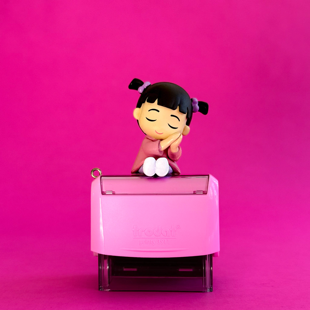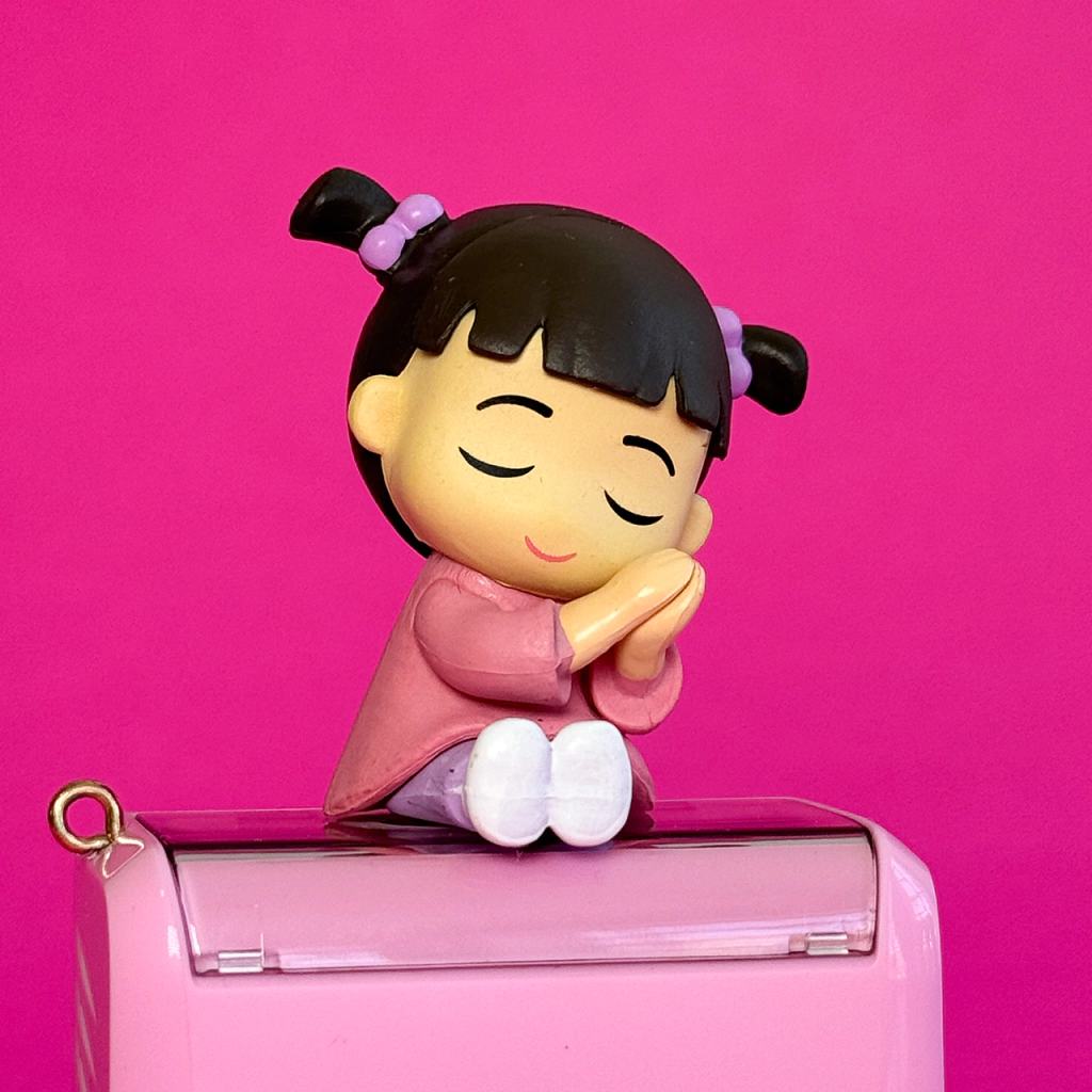 O Carimbo Boo Serena da Coleção Monstros S.A. destaca o lado mais contemplativo e encantador da pequena Boo. Em um momento de calma, ela reflete a pureza e a força dos laços criados com Sulley e Mike. Este carimbo é perfeito para personalizar tarefas que pedem um toque mais sutil e cheio de significado.