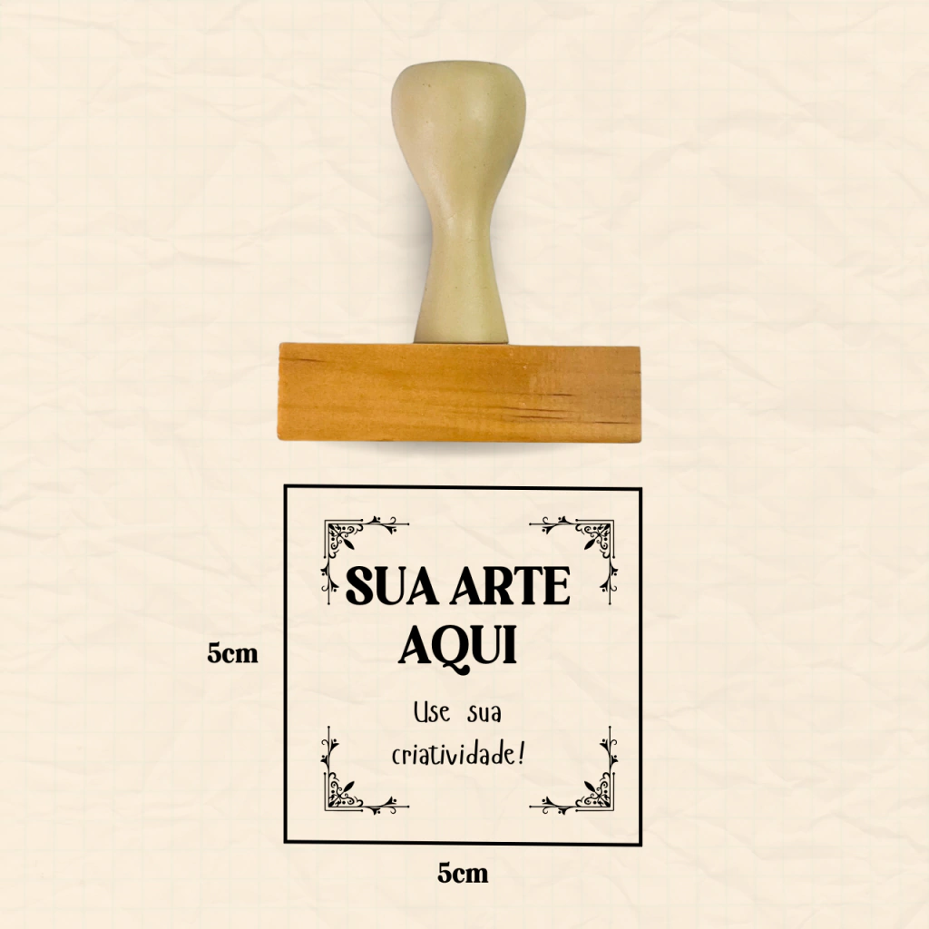 Adquira o Carimbo de Madeira Personalizável 5x5 cm e transforme suas criações com um toque artesanal e exclusivo com a Carimbei.
