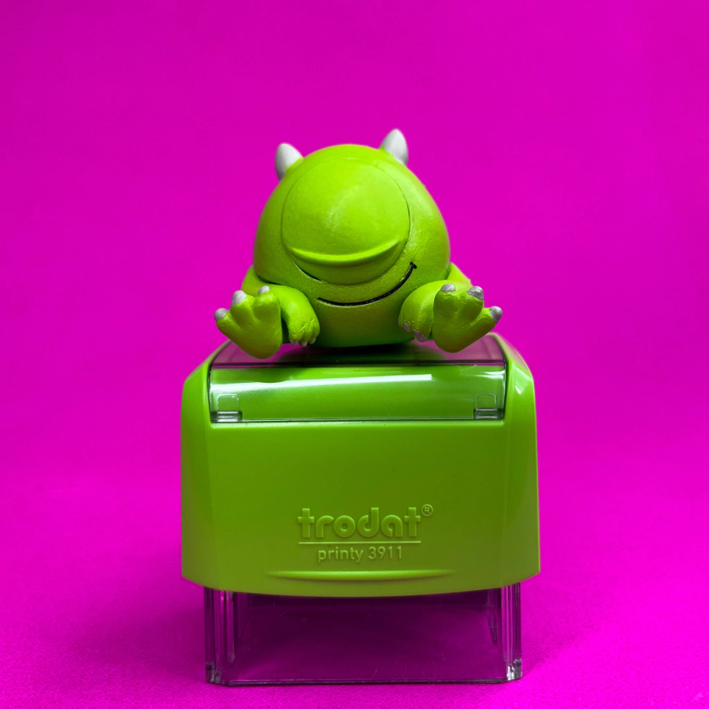 Adquira o Carimbo Mike Wazowski e traga a energia e o humor de Monstros S.A. para iluminar suas tarefas com a Carimbei!