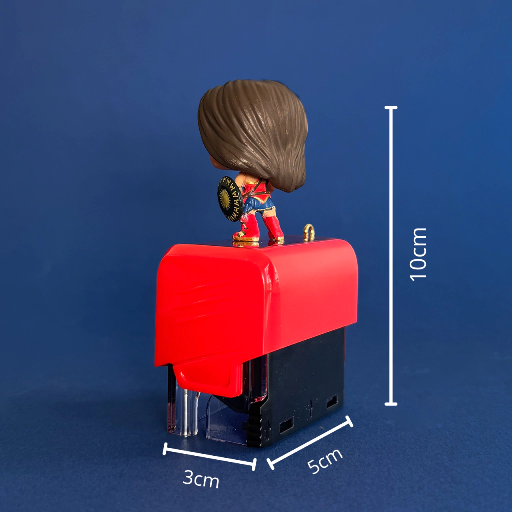 Com um design que representa a Mulher-Maravilha, este carimbo traz um toque único para qualquer marcação. Perfeito para fãs da heroína, colecionadores e para quem deseja adicionar um detalhe especial e empoderador ao seu dia a dia.